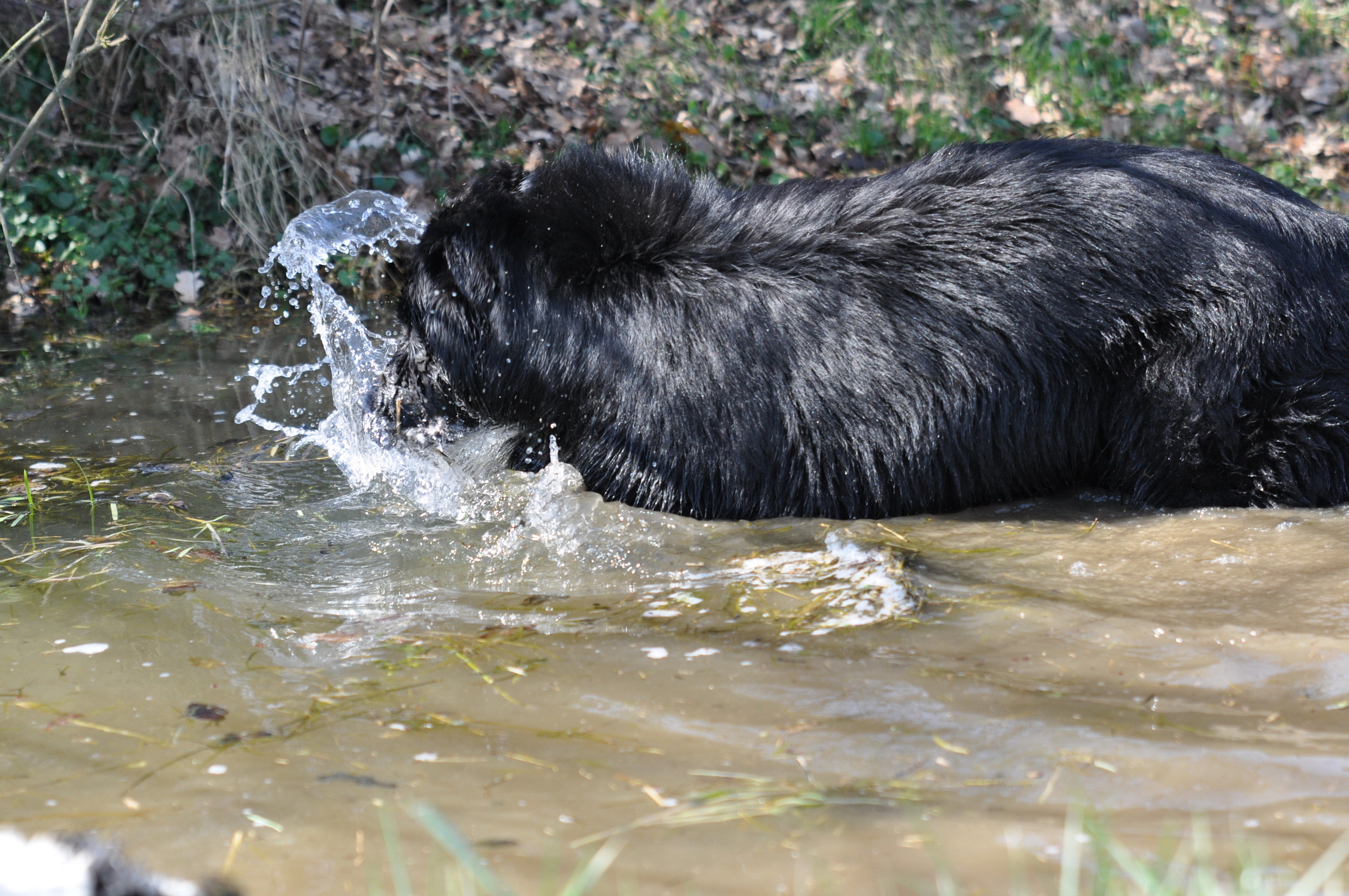 Merlin findet die Kälte einfach genial und das Eis in den Bächen hindert ihn nicht daran im restlichen Wasser ordentlich zu planschen. Vor dem Spaziergang sah er so aus...