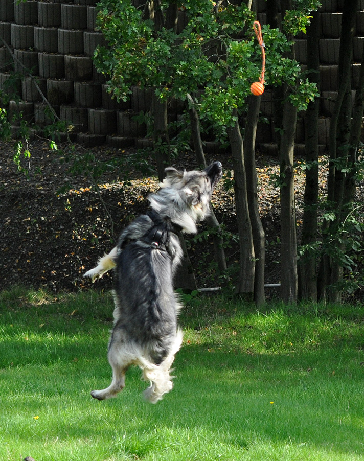 Mit Raven habe ich viel Geruchsdifferenzierung gearbeitet. Seit ein paar Wochen arbeite ich mit ihr die ersten Trails. Es ist super spannend zu sehen wie anders Raven durch den anderen Aufbau arbeitet. Sie ist super konzentriert und ihr war vom ersten Trail an klar, dass sie dem vorgegebenen Geruch bis zur Person folgen soll. Anders aufgebaute Hunde arbeiten häufig eine Kombination aus Individualgeruch und Fußspuren - Raven "guckt" gar nicht nach den Fußspuren.
